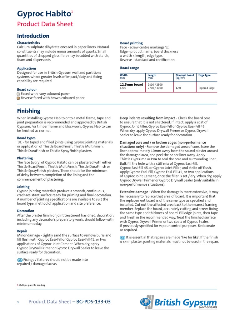 Pds Gyproc Habito Pdf Drywall Plaster